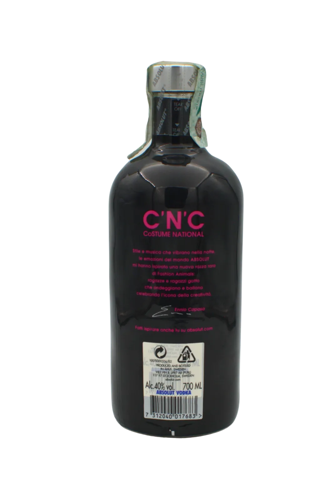 Absolut CNC was released in 2007 and is limited to 100000 copies. This bottle is a collaboration with the italian designer Ennio Capasa for his clothing brand Costume National.