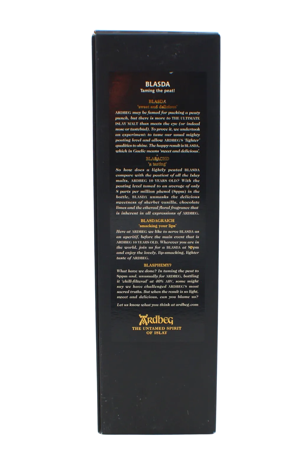 Released in 2008 Ardbeg Blasda offers a milder take on the classic Islay malt featuring a significantly lower peat level of just 8ppm