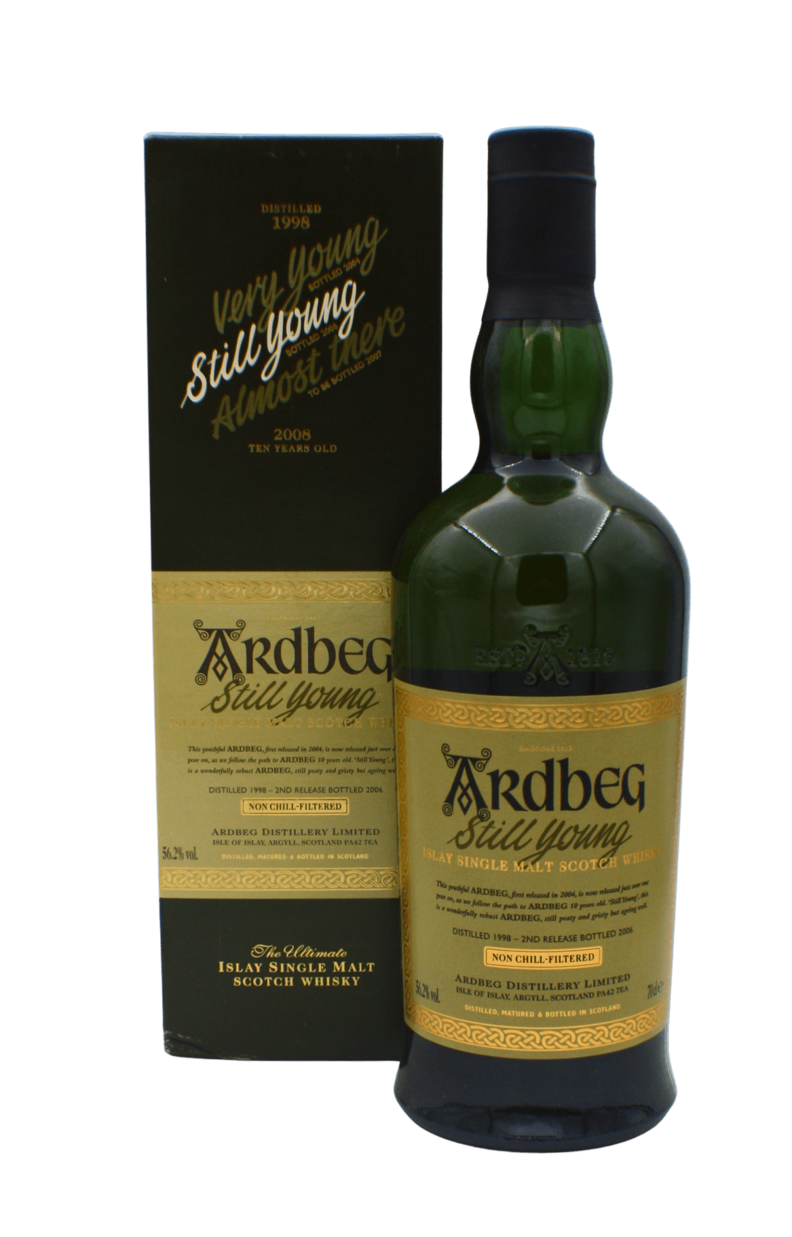 This youthful Ardbeg was initially launched in 2004 followed a little over a year later by the release of Ardbeg Still Young in 2006. Distilled in 1998 it represents the second installment in the ‘Path to Peaty Maturity’ series which traces the journey toward the Ardbeg 10 Year Old.