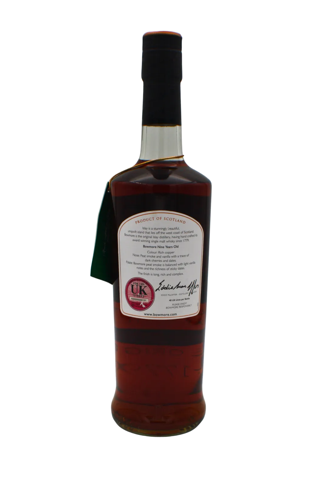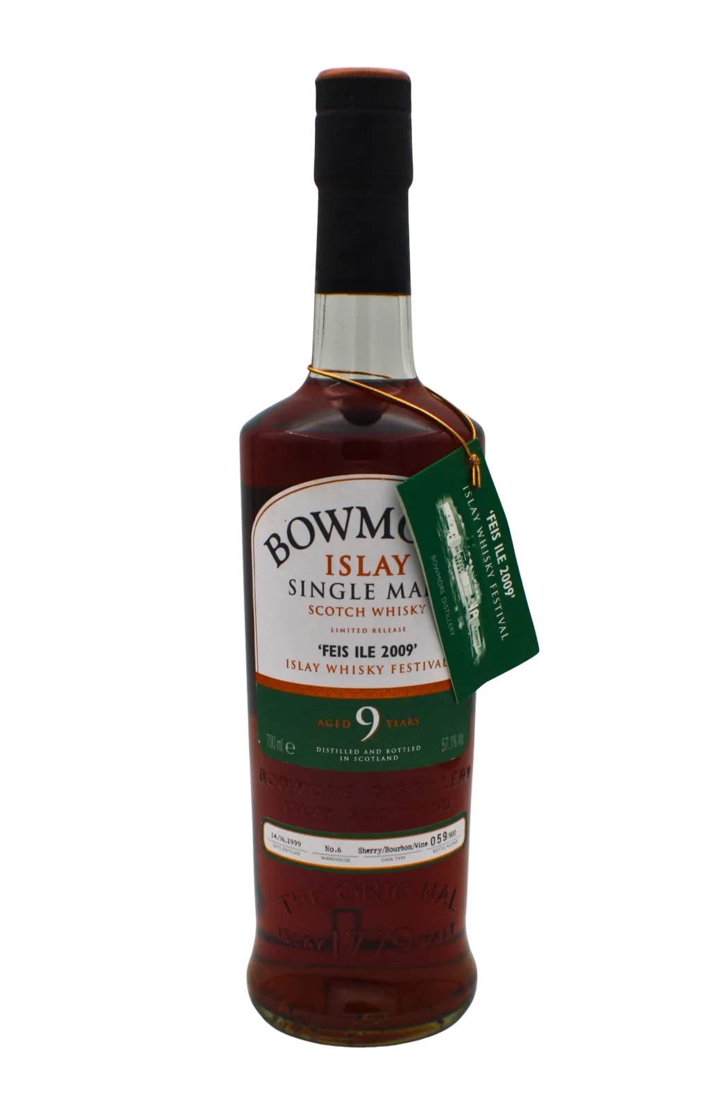 This 9-year-old Bowmore was released exclusively for Feis Ile Islay’s renowned whisky festival. Distilled on June 14th 1999 it was matured in a combination of sherry bourbon and wine casks housed in Warehouse No. 6. This bottle is limited to 900 pieces.