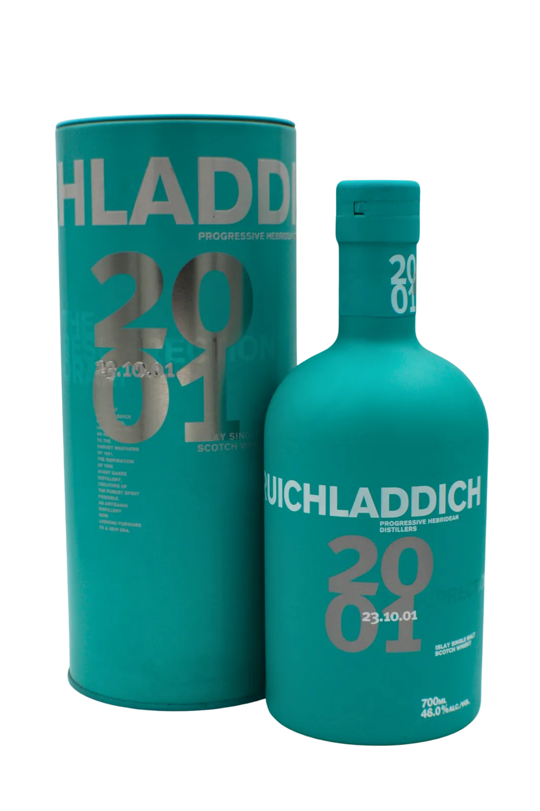 This bottle commemorates the first distillation following the revival of the Bruichladdich distillery in 2001. Lightly peated at 10ppm the whisky was matured in bourbon casks and released as part of a limited run of 24000 bottles.
