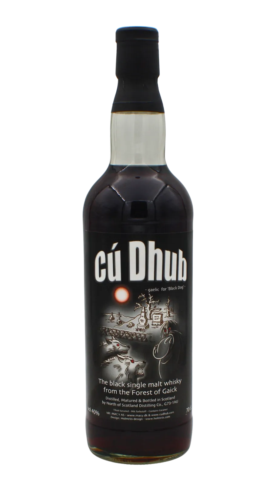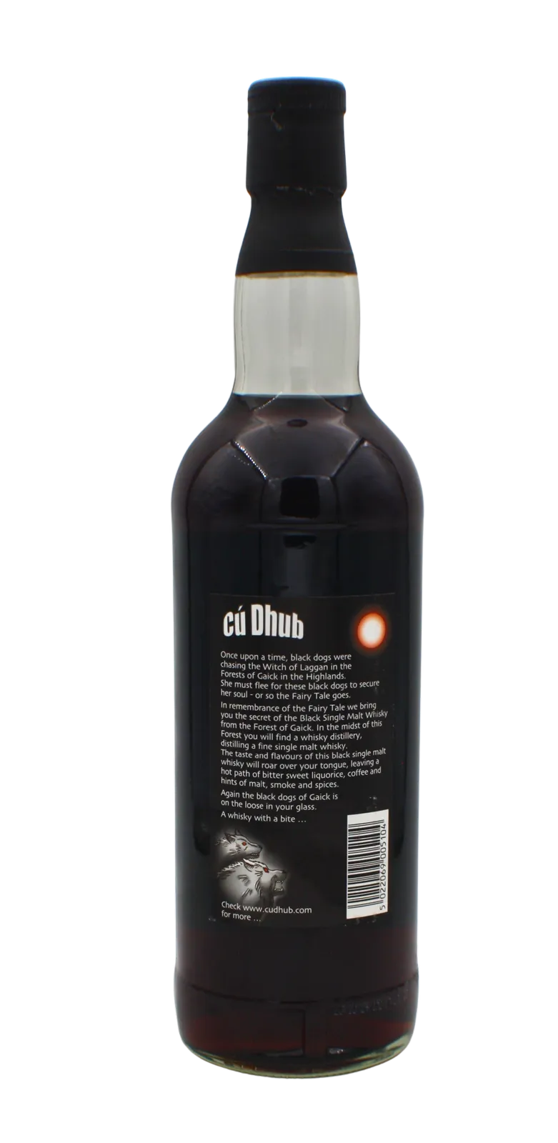 This single malt is distilled in Speyside distillery. Cu Dhub which means ‘Black Dog’ in Gaelic. It’s a dark whisky born from the forests of Gaick its deep color enhanced with caramel.