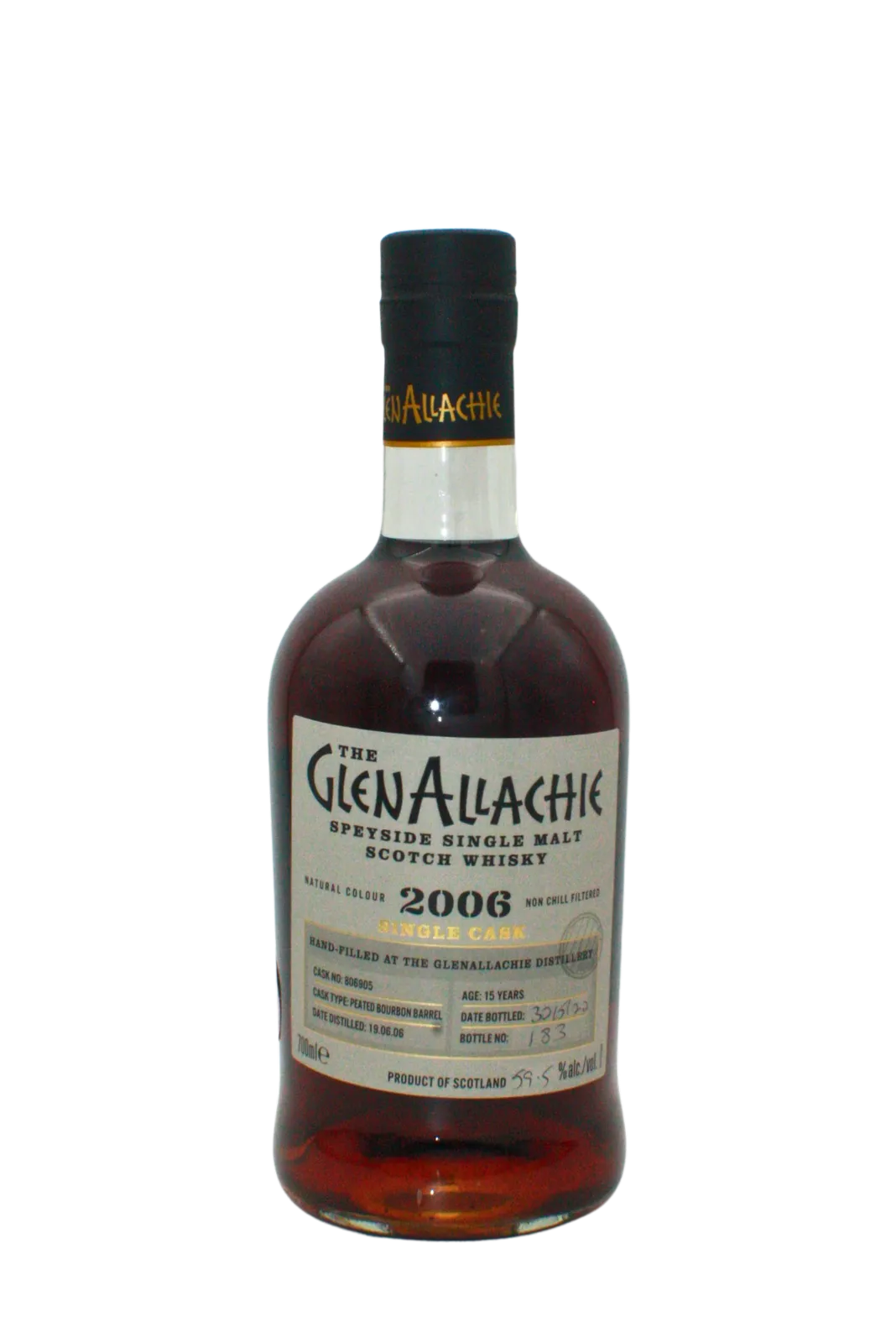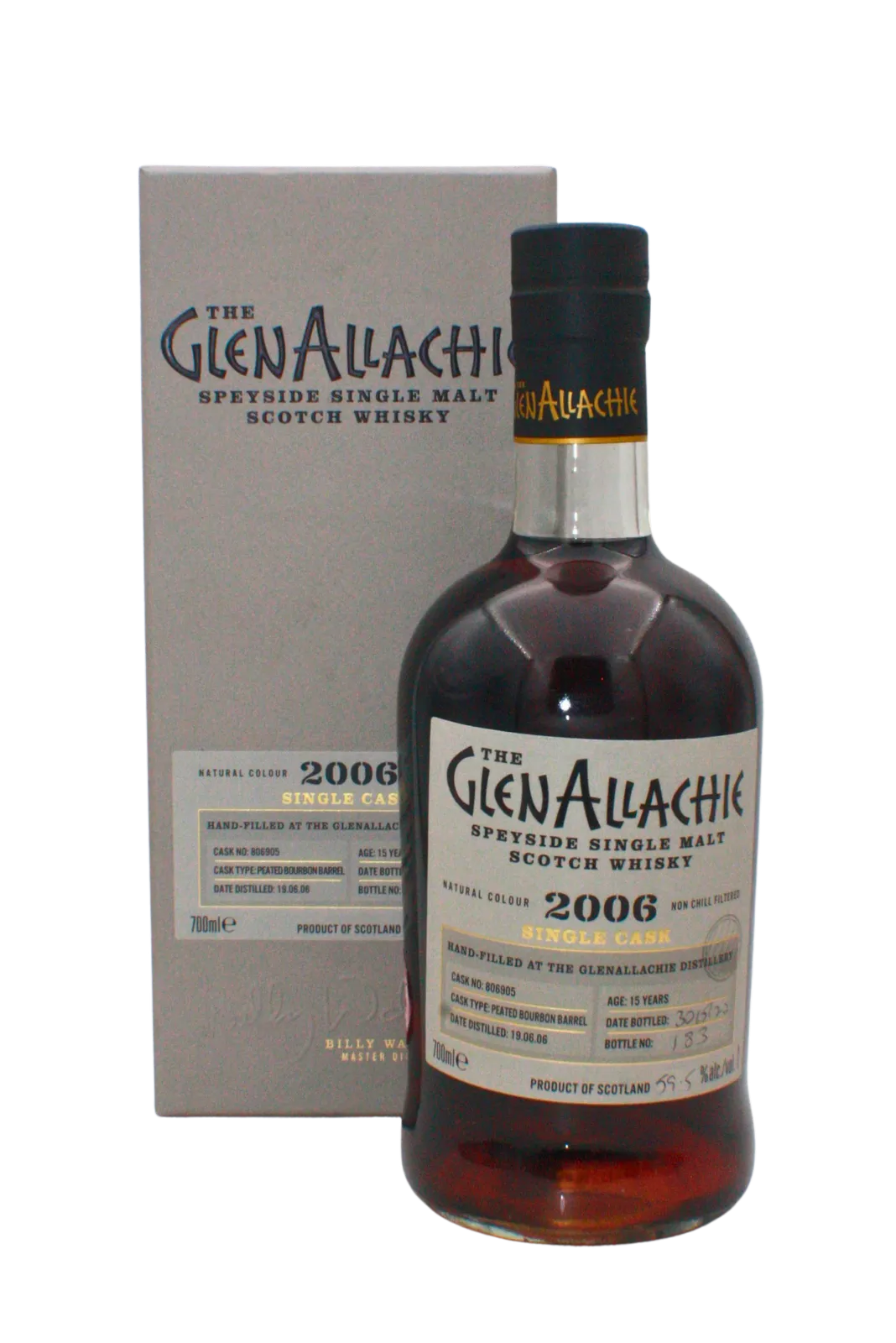 With the recent addition of Billy Walker to the team Glenallachie distillery has be experiencing with various single casks. This particular bottling has been aged for 15 years in Peated Bourbon barrels and was Hand-Filled at the Glenallachie Distillery. This is bottle number 182. Cask Number 806905.