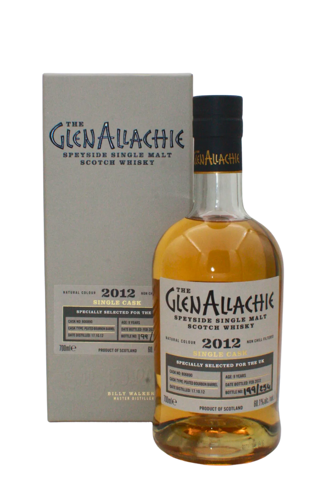 With the recent addition of Billy Walker to the team Glenallachie distillery has be experiencing with various single casks. This particular bottling aged for 9 year in Peated Bourdon barrels and was only released for the UK market. This bottle is 1 of 254. Cask Number 806890.