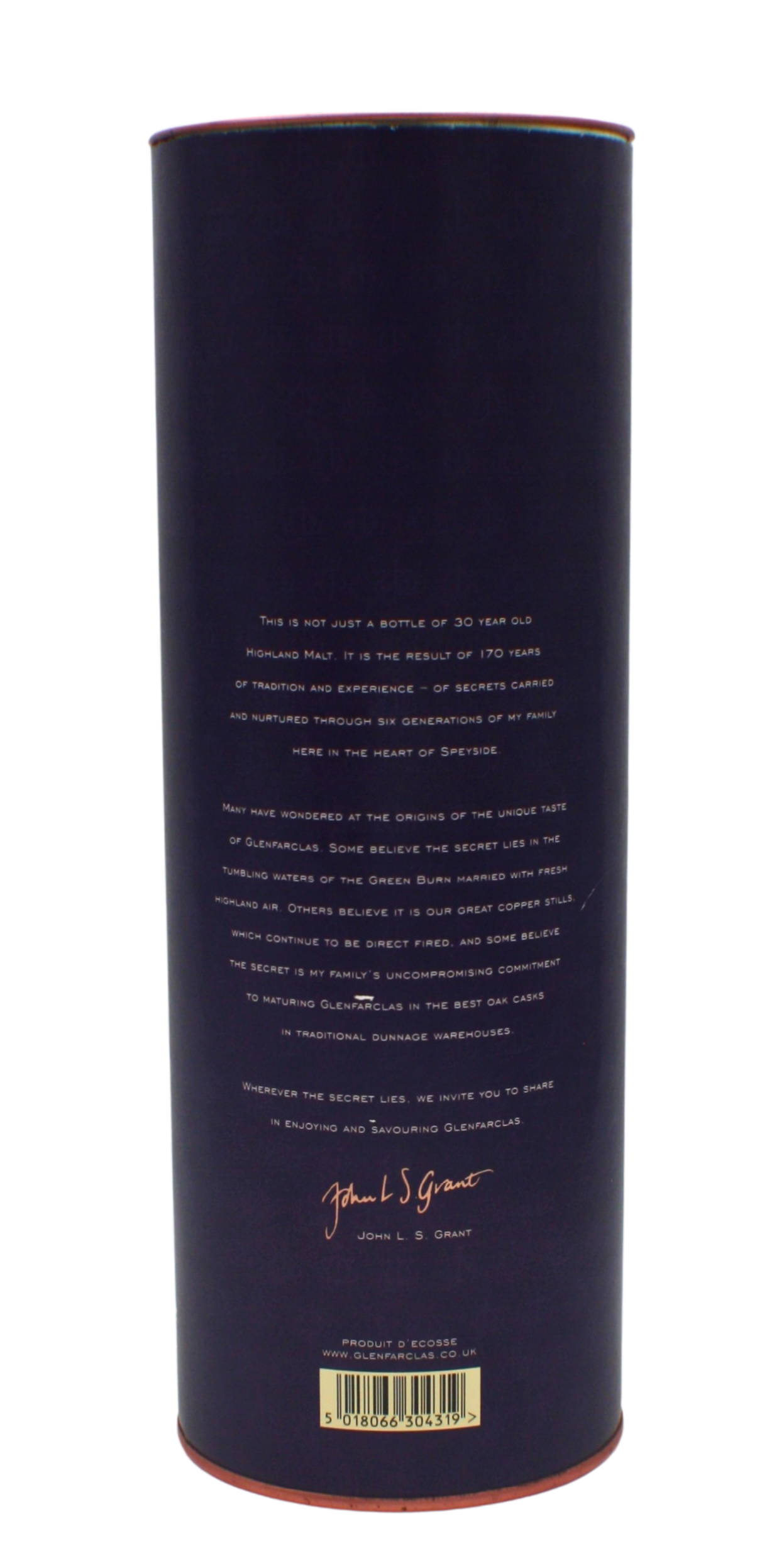 This single malt whisky was distilled at the Glenfarclas distillery in Speyside and aged for 30 years in oak casks.