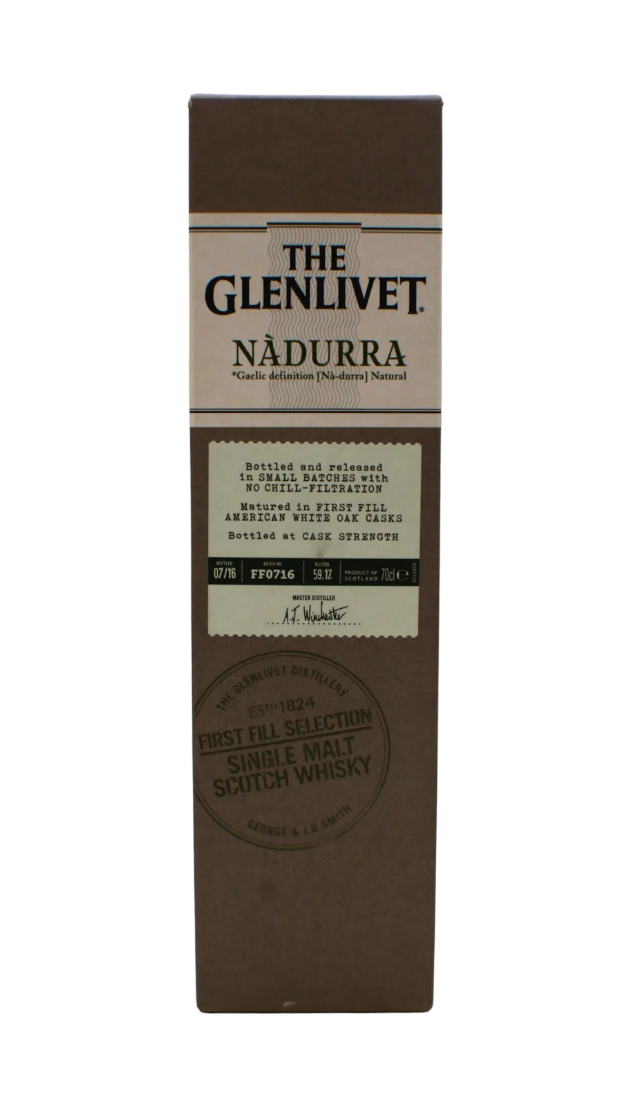 Part of the Glenlivet N?durra range this single malt was entirely matured in first-fill American white oak casks. Each expression in the series is bottled in small batches this particular one batch #FF0716 was bottled in July 2016.