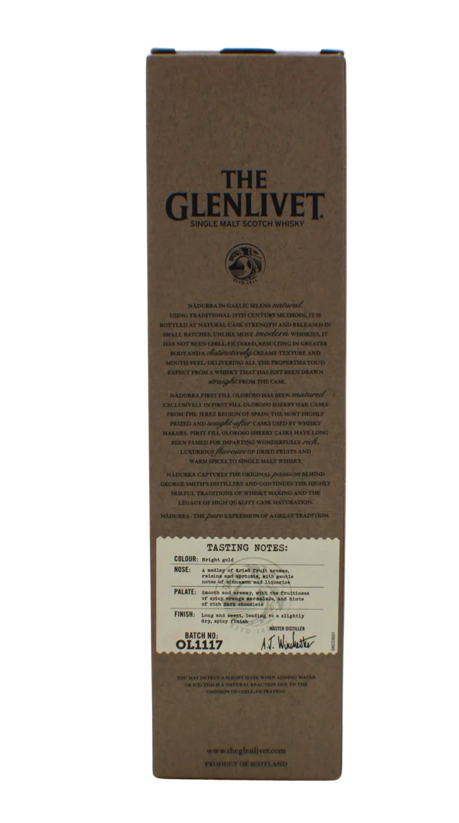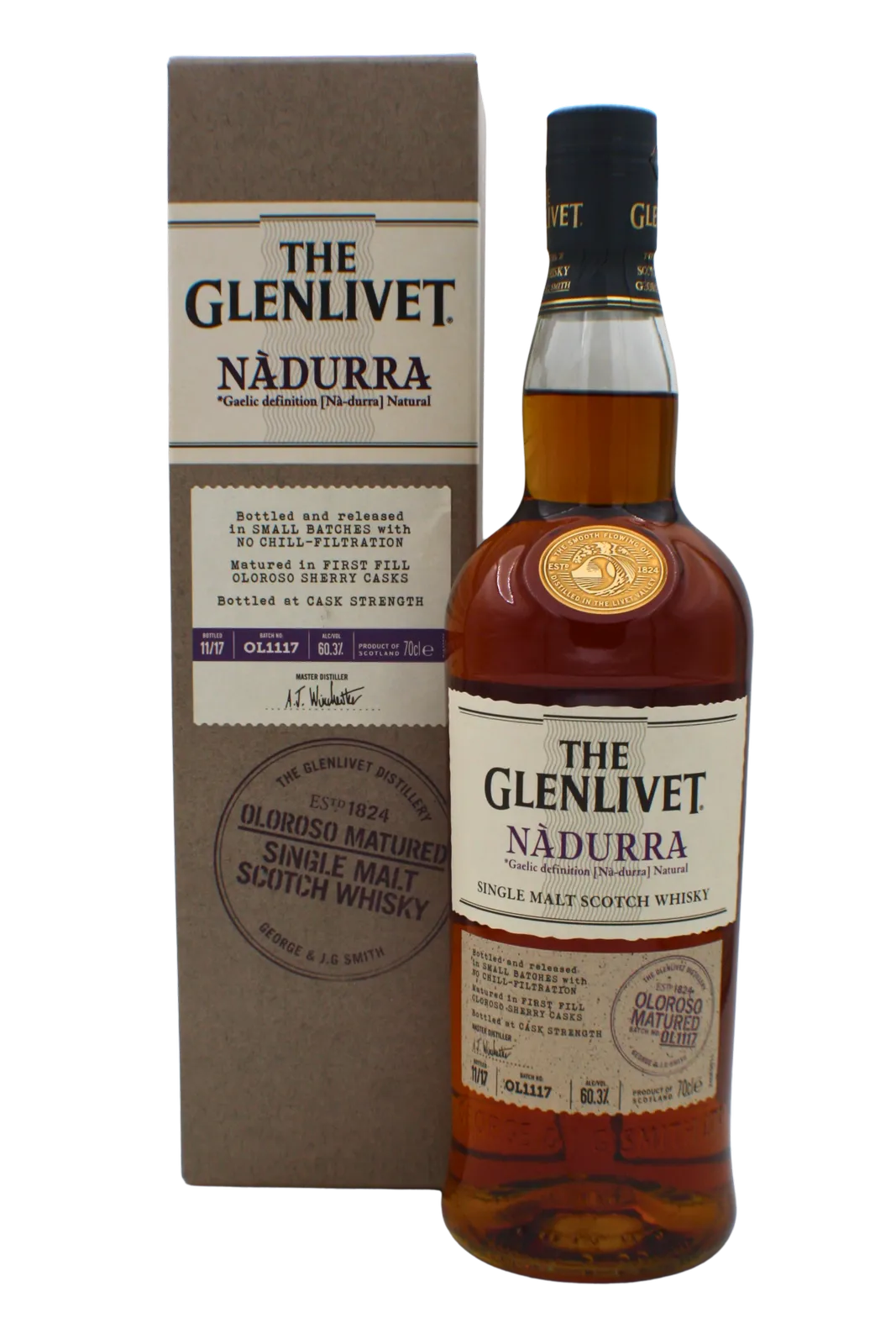 Part of the Glenlivet N?durra range this single malt was entirely matured in first-fill Oloroso sherry casks. Each expression in the series is bottled in small batches this particular one batch #OL1117 was bottled in November 2017.