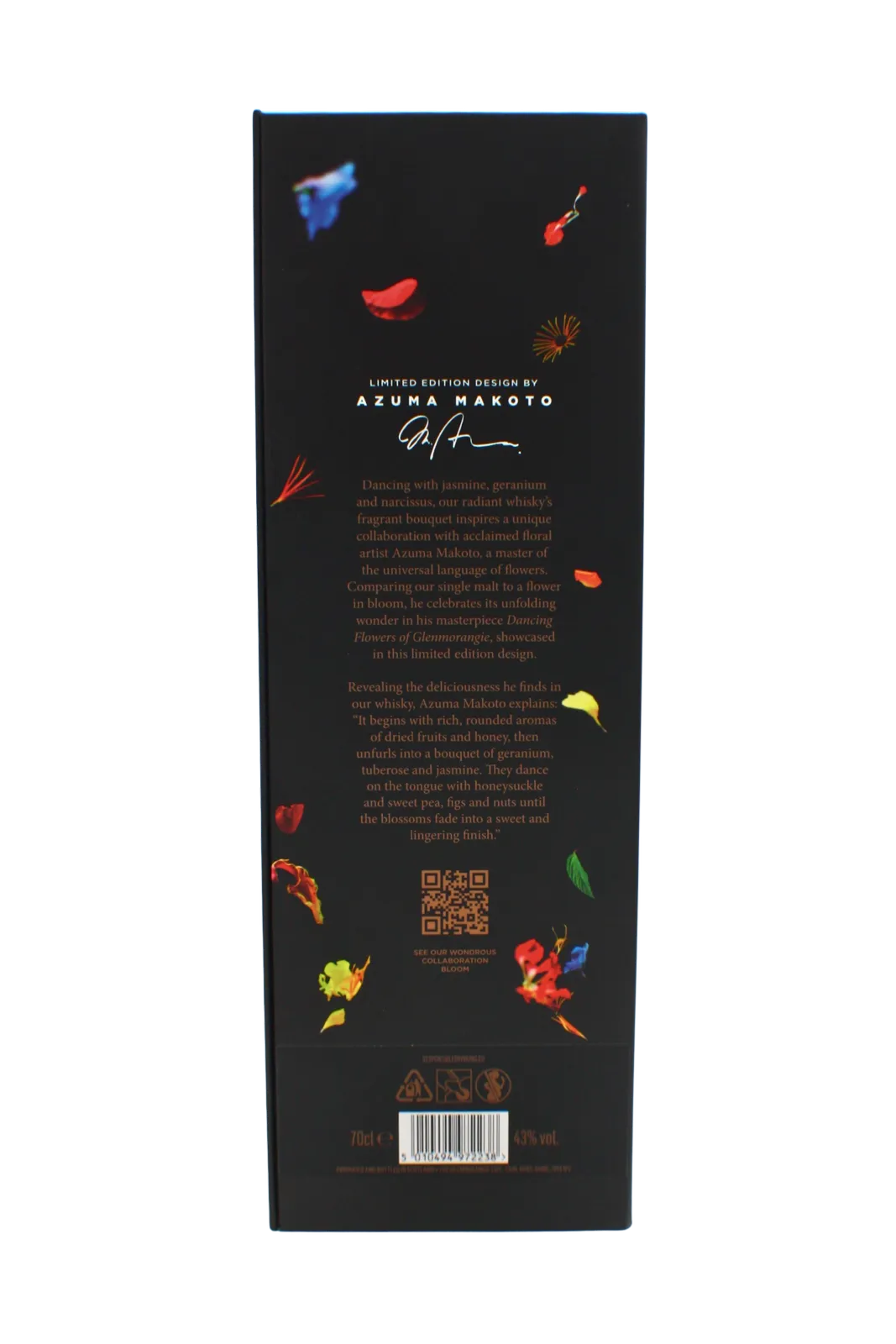 This elegant expression is the result of a creative collaboration between Glenmorangie and renowned Japanese floral artist Makoto Azuma. Aged for 18 years the whisky begins its journey in American white oak casks where it matures for 15 years. Around 30% of the spirit is then transferred to Spanish Oloroso sherry casks for an additional three years. Once both portions reach 18 years of age they are carefully married to create a beautifully balanced and complex whisky