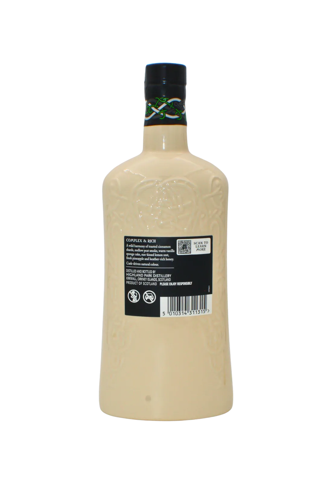 The Highland Park 15 Year Old Viking Heart Scotch Whisky was matured in first-fill European sherry oak casks and is presented in an elegant Wade ceramic bottle.