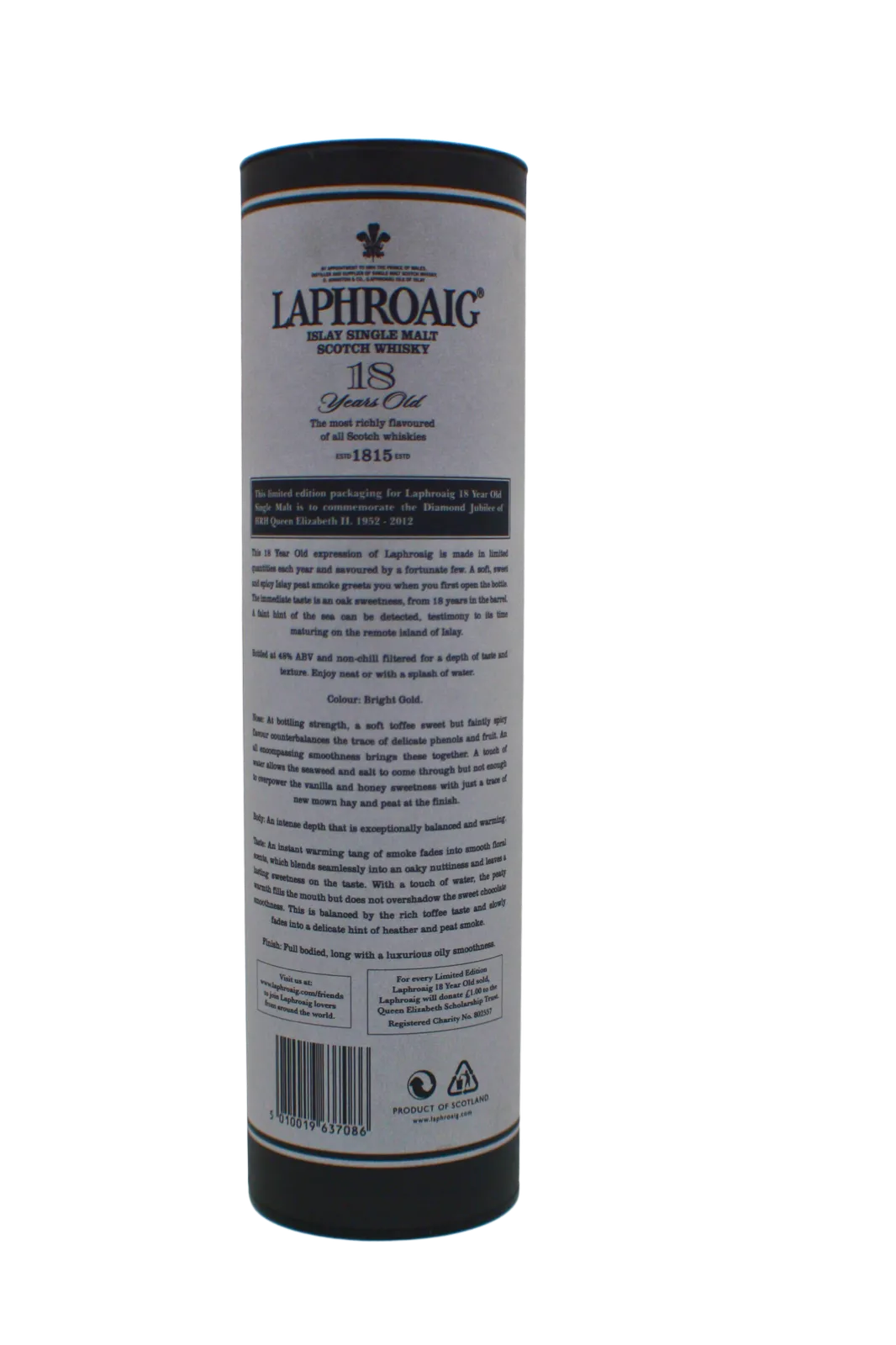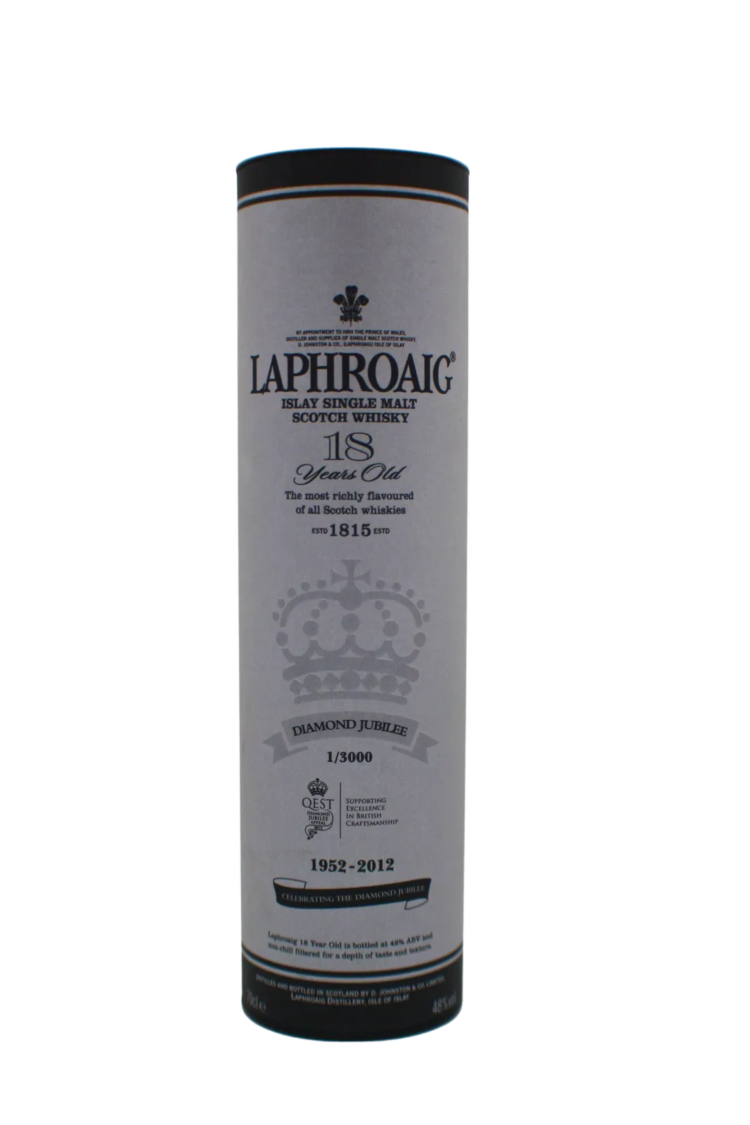Limited to 3000 bottles this 18 year old Laprhoiag was bottled in 2012 to commemorate the Diamon Jubilee of Queen Elizabeth II. Jim Beam donated £3000 from the saled to Queen Elizabeth Scolarship Trust.