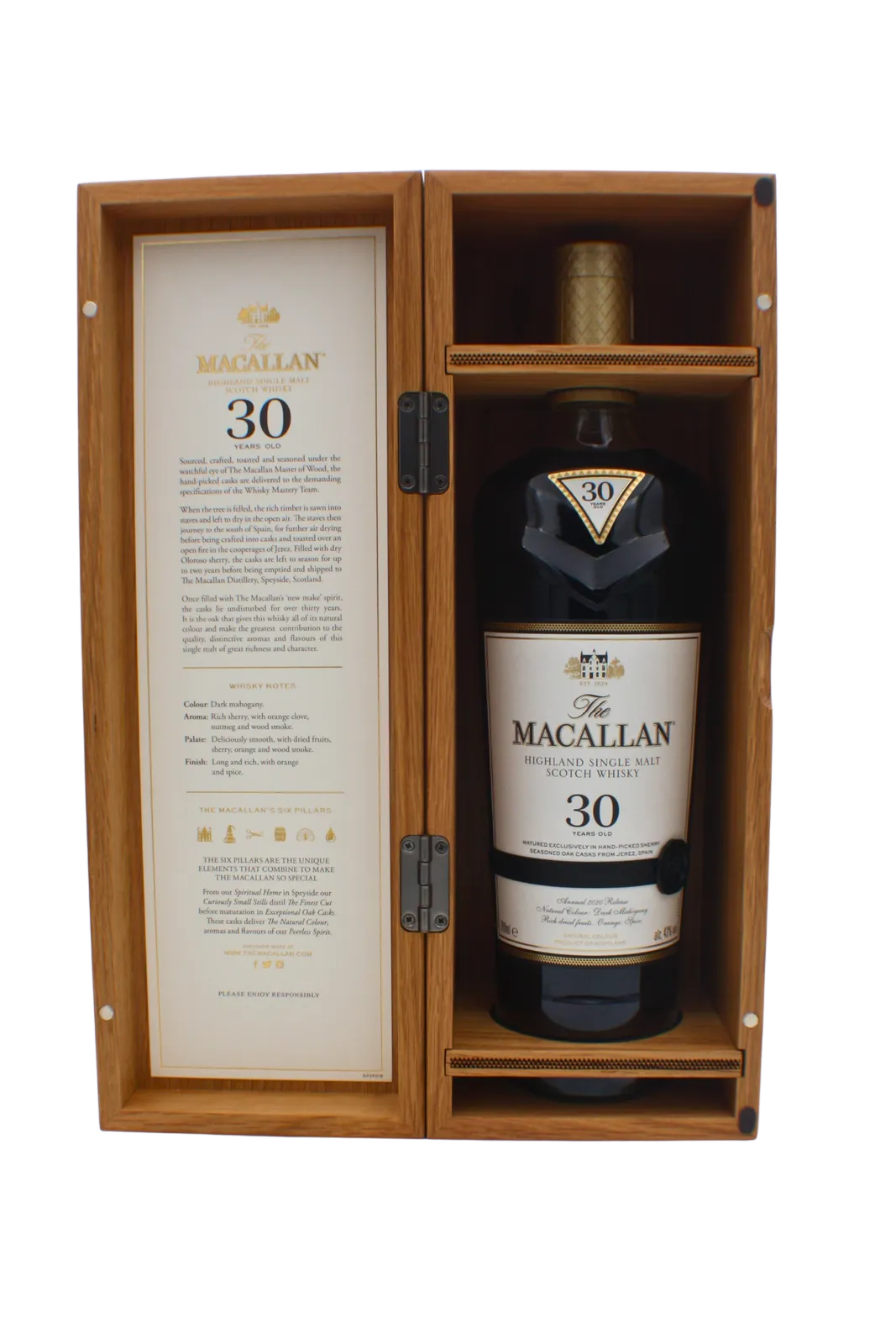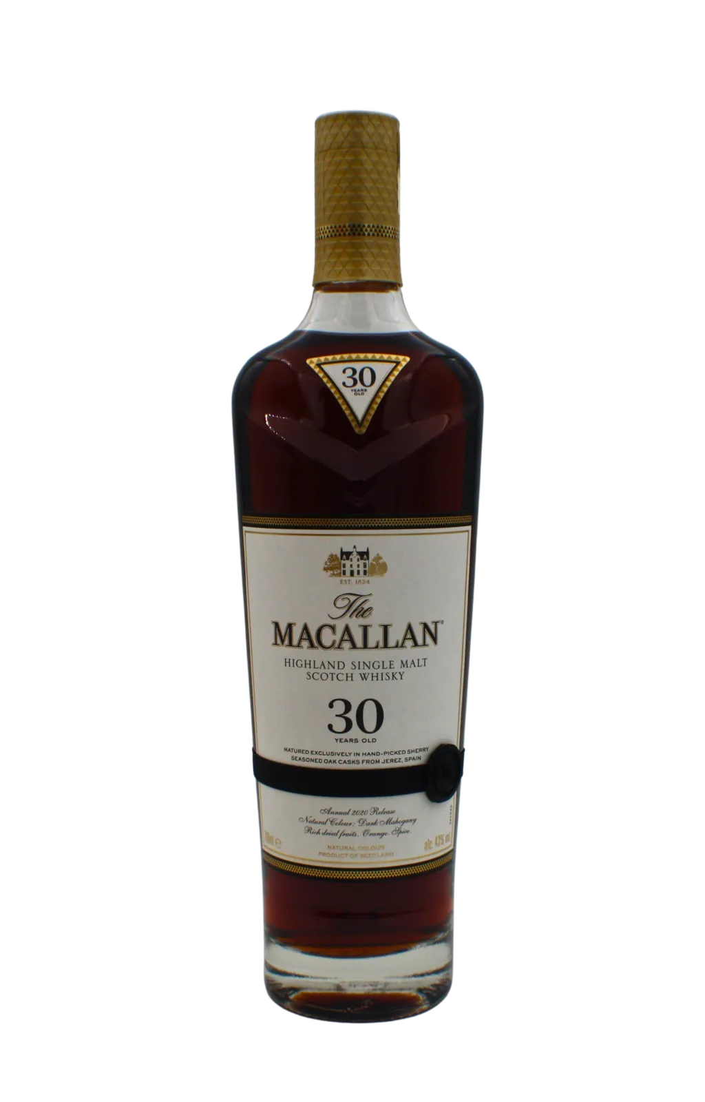 This is the Macallan 2020 annual release of 30 year old whisky matured exclusively in Olorosso sherry casks from Jerez Spain.