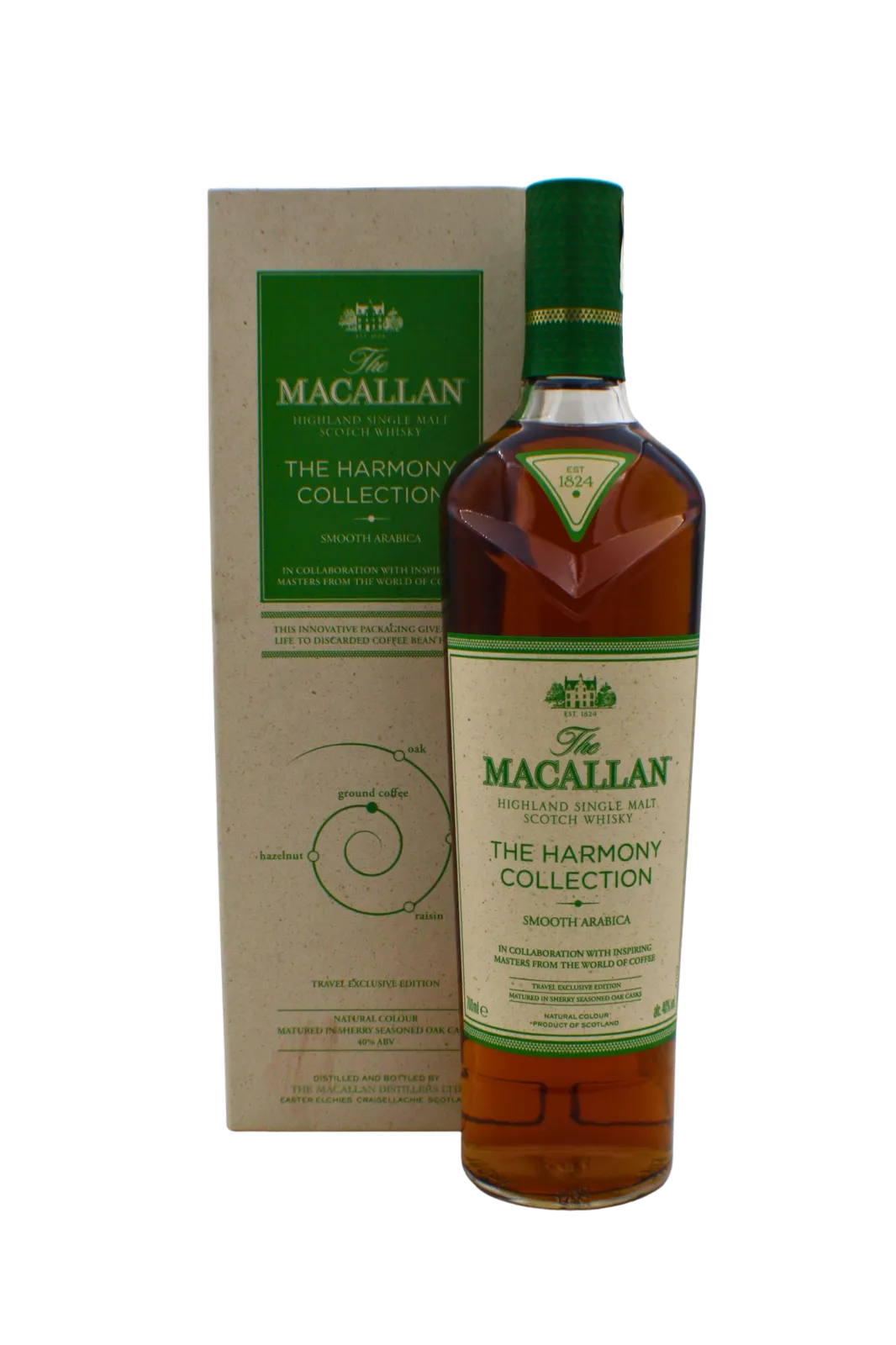 The Macallan Harmony Smooth Arabica is a limited annual release and its part of The Harmony Collection. This is the second release and is a collaboration with inspiring coffee masters from the world of coffee. Steven Bremner Macallan Whisky Maker hosted a masterclass with world coffee masters to explore the proccess from from beam to cup. The result is an Ethipian Arabica bean ispired whisky which matured in sherry seasoned casks. The sustainable packaging come from coffee bean husks. Smooth Arabica was only released for the duty free market.