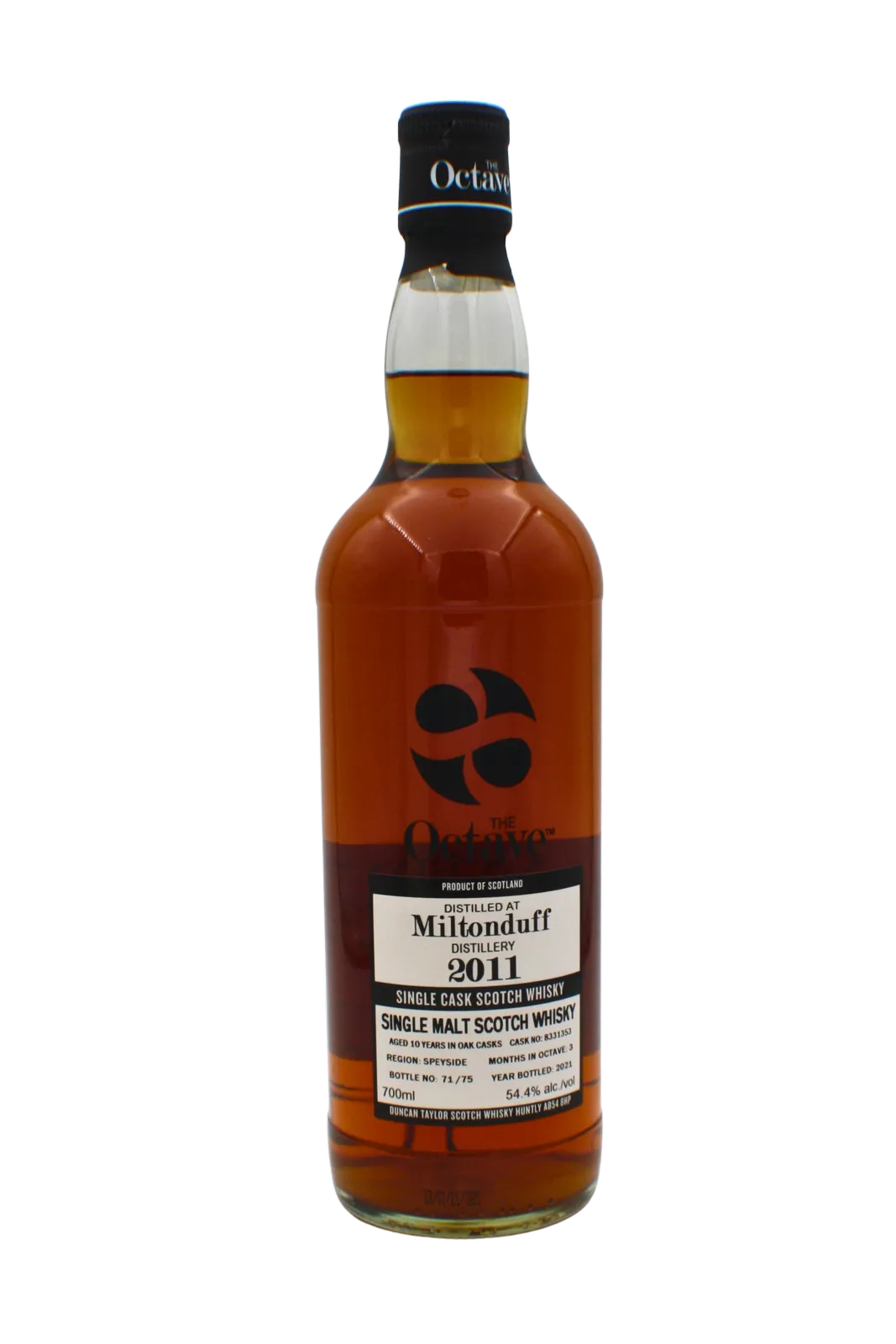 Distilled in the Speyside region of Scotland from the Miltonduff distillery in 2011 this whisky is aged for 10 years in oak casks (cn 8331366) and finished for 6 months in octave casks. Bottled in 2021 and limited to just 85 bottles.